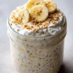 This Banana Cream Pie Overnight Oats recipe captures the creamy, sweet flavors of the classic dessert in a healthy, make-ahead breakfast. It tastes like banana pudding with a hint of graham-cracker crunch. The texture is smooth and creamy from the yogurt and mashed banana, with a pleasant chew from the oats and a crunchy finish from the graham crackers. It smells lightly of vanilla and banana and comes together in minutes the night before.