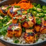 These Bang Bang Salmon Bowls With Rice are an easy, flavorful meal that combines flaky baked salmon, creamy spicy sauce, and fresh crunchy veggies in every bite. They’re quick to make, flexible to adapt, and perfect for weeknights or meal prep. Give this recipe a try—you’ll enjoy the bright lime, spicy kick, and satisfying textures that make it a new staple.