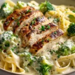 This recipe is a fast, flavorful weeknight winner. The Cajun seasoning gives the chicken a smoky, slightly spicy crust while the Alfredo sauce brings a velvety, cheesy richness. Broccoli adds color, crunch, and a fresh contrast to the creamy sauce. It’s a balanced, crowd-pleasing meal that feels indulgent but comes together in about 30 minutes.