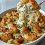This creamy, cozy Chicken Alfredo Tater Tot Casserole blends rich Alfredo sauce, tender chicken, and crispy tater tots into one comforting bake. It’s easy to pull together on a weeknight, and the bubbling cheese and golden tots make a tasty, family-friendly meal. Expect a warm, creamy center with crunchy potato topping and a savory, garlicky aroma that fills the kitchen.