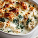 A comforting and creamy chicken casserole with spinach and rich cheeses, perfect for family dinners or potlucks.