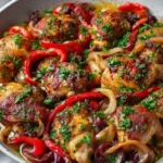 This Chicken with Peppers recipe is simple, full of flavor, and flexible. The sauce is tangy, garlicky, and lightly spicy, and the chicken turns out tender with a nice sear. Try the base recipe first, then experiment with peppers, tomatoes, or olives to suit your taste. For a spicy, pepper-forward cousin to this dish with an Italian twist, check out The Best Chicken Scarpariello with Cherry Peppers – Sip and Feast. Enjoy cooking — this one’s easy to make and even easier to love.