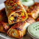 Serve them hot so the wrappers stay crisp and the cheese is melty. Good dipping choices: ranch, avocado crema, chipotle mayo, or salsa verde. Plate them with lime wedges and fresh cilantro for brightness. For a party, cut each egg roll in half on the diagonal and arrange on a platter.