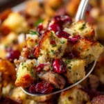 A delightful blend of savory sausage, tart cranberries, and crisp apples, this stuffing is perfect for festive gatherings or cozy family dinners.