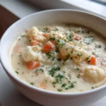 A smooth and comforting creamy cauliflower soup with a silky texture and mild savory flavor, perfect for chilly nights or as a light starter.