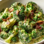 Bright, creamy, and full of savory bacon flavor, this dish turns simple broccoli into a rich, comforting side dish, perfect for weeknight dinners or holiday plates.