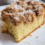 Warm, buttery crumbs, a tender cake base, and a light dusting of powdered sugar — this Crumb Cake is the kind of bake that fills the kitchen with a warm vanilla-and-butter scent and makes people smile. The crumb topping is crisp and sandy, while the cake underneath stays soft and slightly tangy from the sour cream. It works as a breakfast treat, a simple dessert, or a coffee-time snack. If you enjoy easy, comforting recipes, you might also like the flavor pairing in apple yogurt pancakes for another simple morning bake alternative.