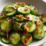 This Crunchy Cucumber Salad with Beef Bacon is quick, tasty, and full of texture — bright cucumbers and tomatoes, sharp onion, and smoky-crisp bacon. It’s easy to adapt, and the simple dressing makes the flavors pop. If you enjoy bacon-and-cucumber combinations, you might also like the recipe for Bacon Cream Cheese Cucumber Boats – Lemon Tree Dwelling for a fun appetizer idea. Give this salad a try — it comes together fast and always disappears at the table.