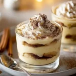 You will whisk a smooth custard-like filling, briefly soak ladyfingers so they stay tender, then build layers in individual cups. Chill well so flavors meld and textures set. The result is silky, lightly spiced, and elegantly simple.