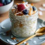 You’ll mix the oats with coconut milk, yogurt, a touch of sweetener, shredded coconut, and vanilla. The mixture soaks in the fridge so the oats soften and the flavors meld. In the morning, you’ll stir, thin if needed, and top with fresh fruit. It’s a no-cook method that yields a smooth, slightly chewy texture and a fragrant coconut aroma.