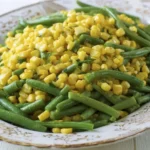 A delightful side dish that combines the sweetness of corn with the crispness of green beans, enveloped in a rich, savory herb butter.