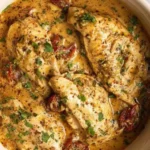 This recipe gives you tender, juicy chicken with a creamy, tangy sauce and high protein per serving. The slow cooker makes the chicken very tender so it shreds easily. The sauce tastes rich and savory with a bright tomato tang from sun-dried tomatoes and a nutty finish from parmesan. It’s low-effort, family-friendly, and fills a dinner table with warm, comforting aromas.