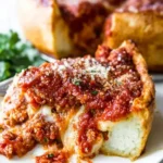 Homemade Chicago Style Deep Dish Pizza is a delicious treat that brings the best of classic flavors right to your kitchen. This thick, hearty pizza features a buttery crust filled with gooey cheese, savory sausage, and vibrant veggies, all topped with a rich marinara sauce. Whether you’re planning a cozy family dinner or a game night with friends, this deep dish pizza will impress everyone at your table.