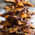 This toffee is quick to make and delivers big holiday flavor. The butter and sugar caramelize into a hard, buttery base. Chocolate on top adds a smooth, rich layer. Chopped nuts bring a toasted, earthy crunch. You can make it ahead and wrap pieces for gifts, or set a bowl out at a party. It looks festive and tastes homemade — buttery, sweet, slightly smoky from caramel, and satisfyingly crunchy.