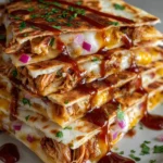 These Hot Honey BBQ Chicken Quesadillas balance sweet heat, smoky BBQ, and melty cheese for a fast, satisfying meal. Crispy, golden tortillas hide pockets of tender shredded chicken coated in sticky hot honey BBQ, with a bright bite from red onion and fresh cilantro. They smell sweet and savory as they cook and offer a mix of crunchy edges and gooey centers.