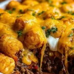 The Irresistible Cheeseburger Tater Tot Casserole is a fantastically easy-to-make dish that perfectly marries two beloved favorites: cheeseburgers and tater tots. With its creamy, cheesy filling and crispy topping, it guarantees smiles around the dinner table. Whether you are feeding a hungry family or hosting a party, this casserole is sure to impress. Try making it today and enjoy a delightful mix of flavors and comfort that’s sure to become an instant favorite!