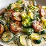 You’ll blanch the vegetables, make a simple cream-cheese mix, add cooked sausage, and bake until bubbly. The process is straightforward and forgiving. Read the steps below and prepare for a rich, satisfying dish.