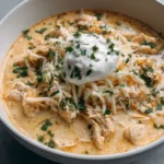 This creamy, comforting Keto White Chicken Chili blends tender shredded chicken with warm spices, green chilies, and a rich, silky broth. It smells of cumin and garlic as it simmers. The texture is smooth from the cream and beans, with bright cilantro on top. It’s an easy weeknight meal that fills the house with cozy, savory aromas.