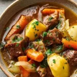This lamb stew is comforting and satisfying. The meat becomes melt-in-your-mouth tender. The broth tastes savory and herby. Carrots and potatoes add sweetness, body, and soft texture. It fills the kitchen with a warm, savory aroma. It’s a great dish for cold nights, family dinners, or when you want leftovers that reheat well.