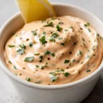 This Louisiana Remoulade Sauce is a creamy, tangy, and slightly spicy condiment that brightens seafood, sandwiches, and fried foods. It has a smooth, rich texture from mayonnaise, a tangy bite from mustard and lemon, and a peppery finish from hot sauce and capers. The color is a warm pink-orange, and the aroma is garlicky and zesty. It’s quick to make and ideal for adding bold flavor to simple dishes.