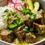This Mexican Beef Green Chile is bright, tangy, and deeply savory. Tender chunks of beef simmer in a green chile and tomatillo sauce until they fall apart. The aroma of roasted tomatillos and sautéed garlic fills the kitchen. The sauce tastes slightly tart, mildly spicy, and very fresh thanks to the green peppers and cilantro. It’s a comforting, hearty dish that pairs well with rice, tortillas, or a simple salad.