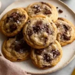 Fold in the chocolate chips so they’re evenly distributed. Drop tablespoon-sized amounts of dough onto the prepared baking sheet, spacing them about 2 inches apart. Bake for 10–12 minutes or until the edges are light golden and the centers look set but still soft. Baking time can vary slightly by oven and cookie size.