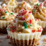 This festive, no-fuss dessert gives classic cheesecake flavor in a tiny, hand-held bite. These No Bake Christmas Mini Cheesecakes have a buttery graham crust, a silky, sweet cream cheese filling, and bright red and green sprinkles that make them look like little holiday ornaments. They taste creamy and light, with a hint of vanilla and a crunchy base. If you love small treats for parties or gifts, you might also enjoy a fruity twist like juicy mini lemon blueberry cheesecakes for a bright contrast.