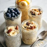 Serve your overnight oats in individual bowls or jars. They’re perfect as-is or can be personalized with toppings like sliced bananas, berries, nuts, or even a sprinkle of cinnamon. You could also add a dollop of yogurt or a drizzle of maple syrup on top for extra flavor.