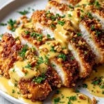 This Pretzel Crusted Chicken with Cheddar Mustard Sauce is crunchy, savory, and creamy all at once. The salty pretzel crust gives a toasted, nutty crunch while the warm cheddar-mustard sauce adds tang and smooth richness. It’s a weeknight winner that looks special but comes together fast.