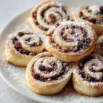 The method is simple: roll, spread, roll again, slice, and bake. Use a light touch when rolling and slicing so the layers stay flaky. Chill the log briefly if the filling gets soft. Brush with egg for a deep golden shine and dust with powdered sugar for a pretty finish.