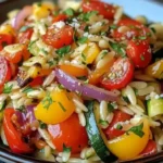 This recipe is quick, flexible, and full of flavor. Roasting the vegetables brings out their natural sweetness and adds a light caramelized edge. Orzo cooks fast and soaks up the warm, savory flavors, giving you a dish that feels both fresh and comforting. It’s perfect for busy nights, potlucks, or a simple side that pairs well with grilled meats or a green salad.