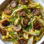 You’ll brown the sausage, soften aromatics, then toss in cabbage and soy sauce. The dish cooks on one skillet, so cleanup is easy. Keep the heat medium to get nice browning without burning the garlic. Stir occasionally so the cabbage cooks evenly and soaks up flavor.