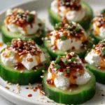 This recipe turns simple ingredients into a bright, crunchy snack. Cool cucumber rounds meet creamy cottage cheese spiked with chili and garlic. The result is fresh, tangy, lightly spicy bites with a pleasant crunch and herby finish. They make an easy appetizer, a light snack, or a healthy party nibble.