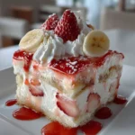 This Strawberry Banana Pudding Dream is light, fruity, and very easy to make. Soft bananas and bright strawberries meet creamy vanilla pudding and airy whipped cream. Each spoonful is smooth, slightly sweet, and crunchy from graham cracker crumbs. It chills into a cool, refreshing dessert that feels like a summer hug.