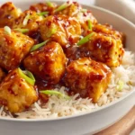 Vegan Orange Chicken is a bright, tangy, and comforting plant-based twist on a takeout favorite. Crisped soy curls or tofu soak up a glossy orange sauce that balances sweet maple and citrus with a warm hint of ginger and garlic. The sauce smells citrusy and sweet; the bites are tender with a slight chew and a sticky, shiny coating. This recipe is quick to make and perfect for a weeknight meal or a casual dinner with friends.