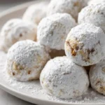 These walnut snowball cookies are buttery, tender bites rolled in powdered sugar. They melt in your mouth, with a soft, crumbly texture and a nutty crunch from chopped walnuts. The smell is warm and comforting, and they make a lovely treat for holidays, tea time, or any cozy moment.